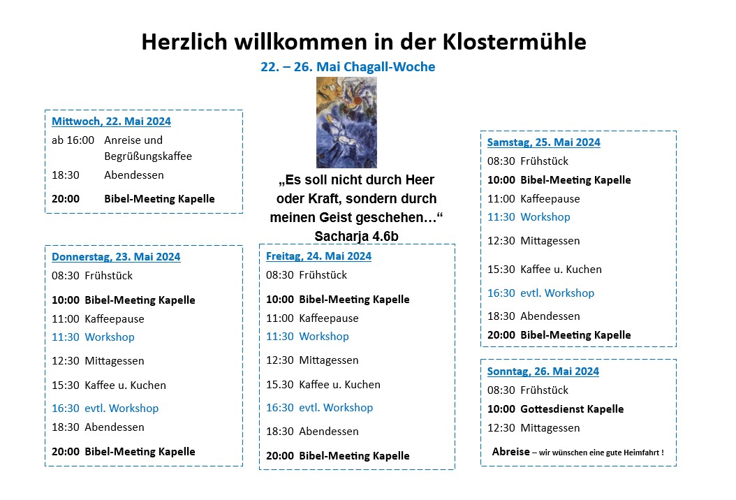 Wir erkunden die lokalen Wanderwege der Region zusammen und umrahmen das Freizeitprogramm mit Bibelarbeiten morgens und abends. Wer die Tage lieber asl Einkehrtage nutzen möchte, ist auch dazu herzlich eingeladen.